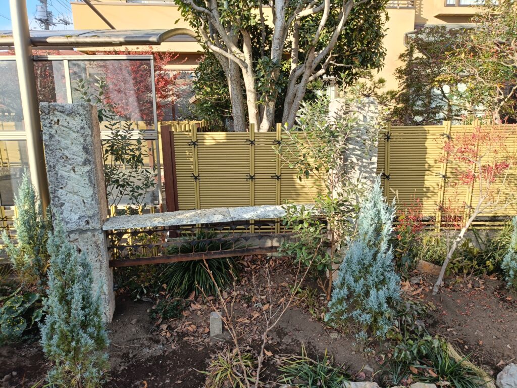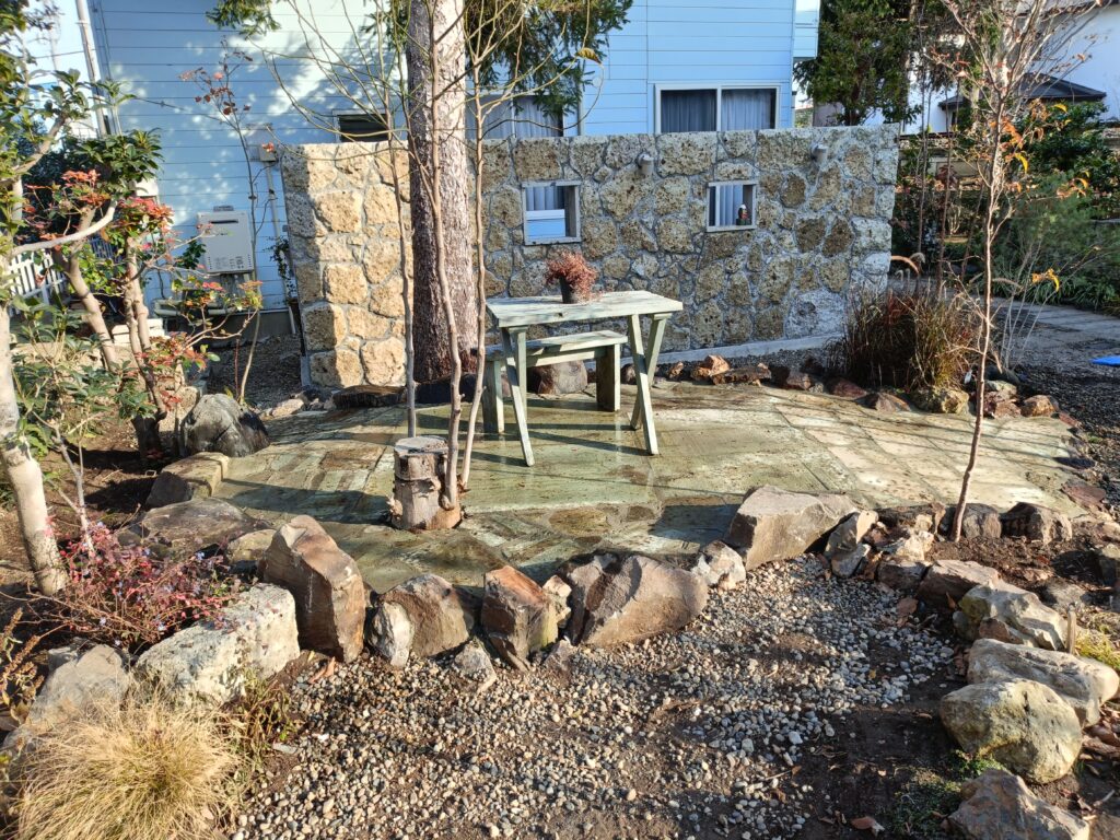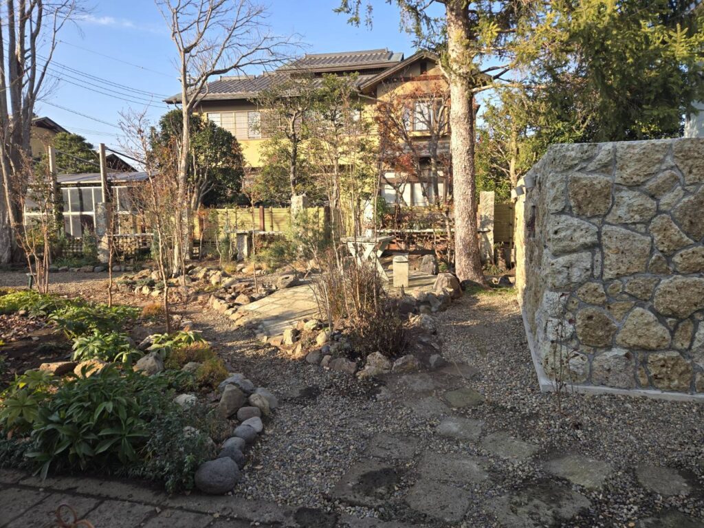 作品紹介2025年12月12日宇都宮市T邸玄関大谷石乱張り貼石・大谷石乱張りスクリーン・大谷石目隠しオベリスク・大谷石・みかも石ステージ