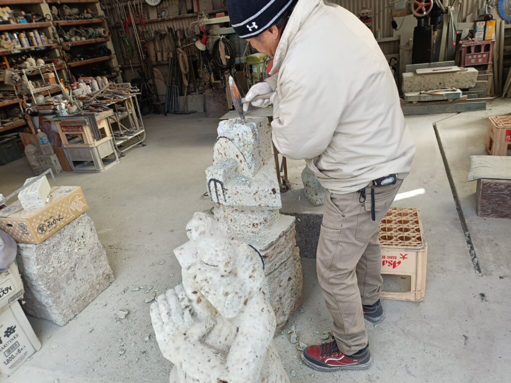 手のひらサイズの彫刻から大型建造物まで、大谷石の可能性を日々探求し続けています。