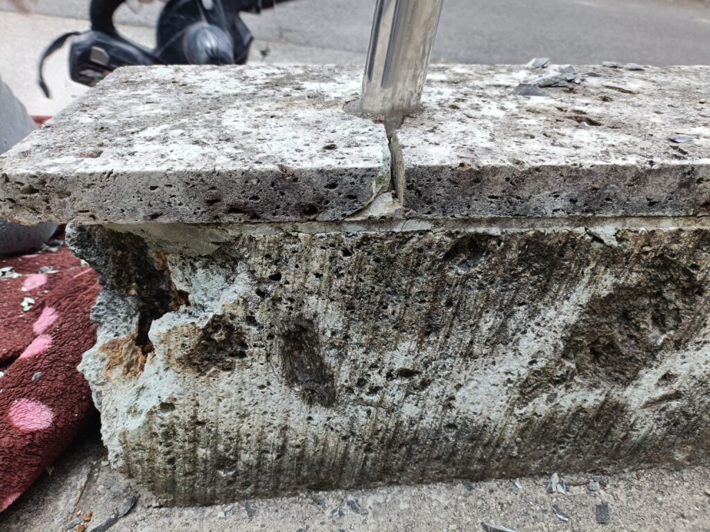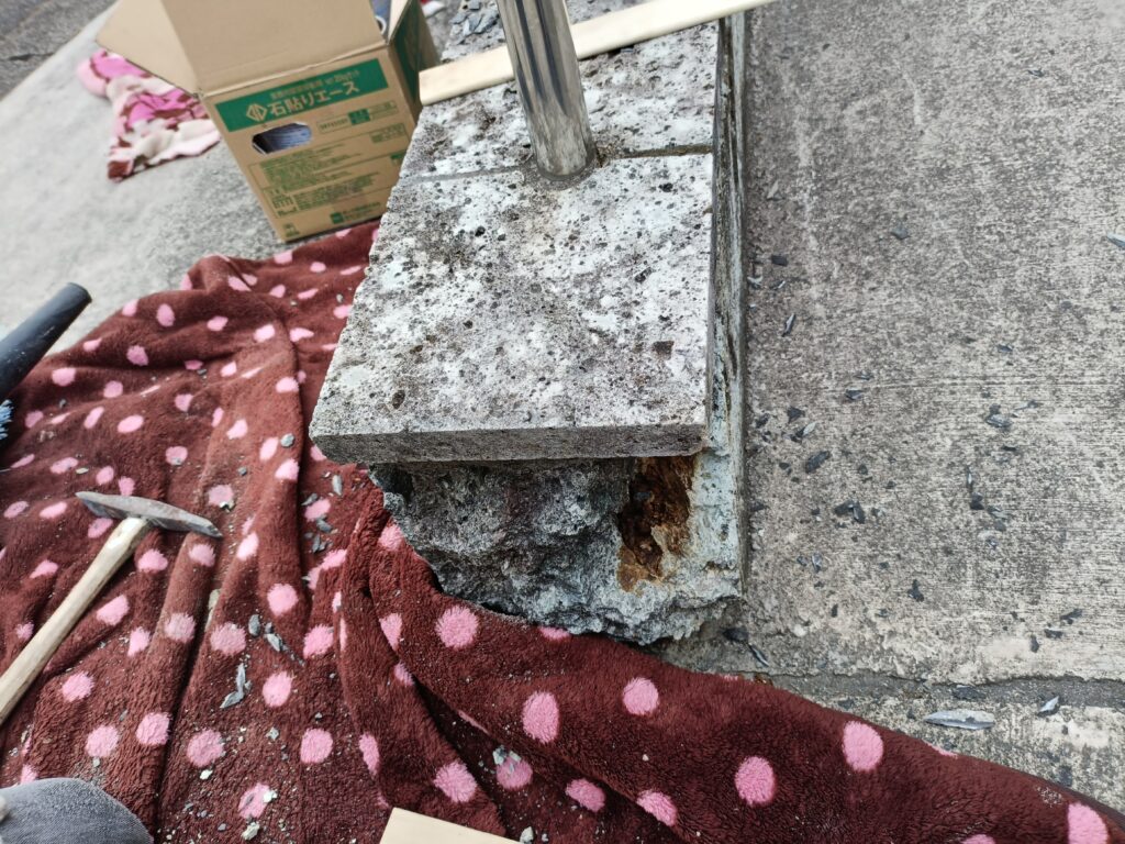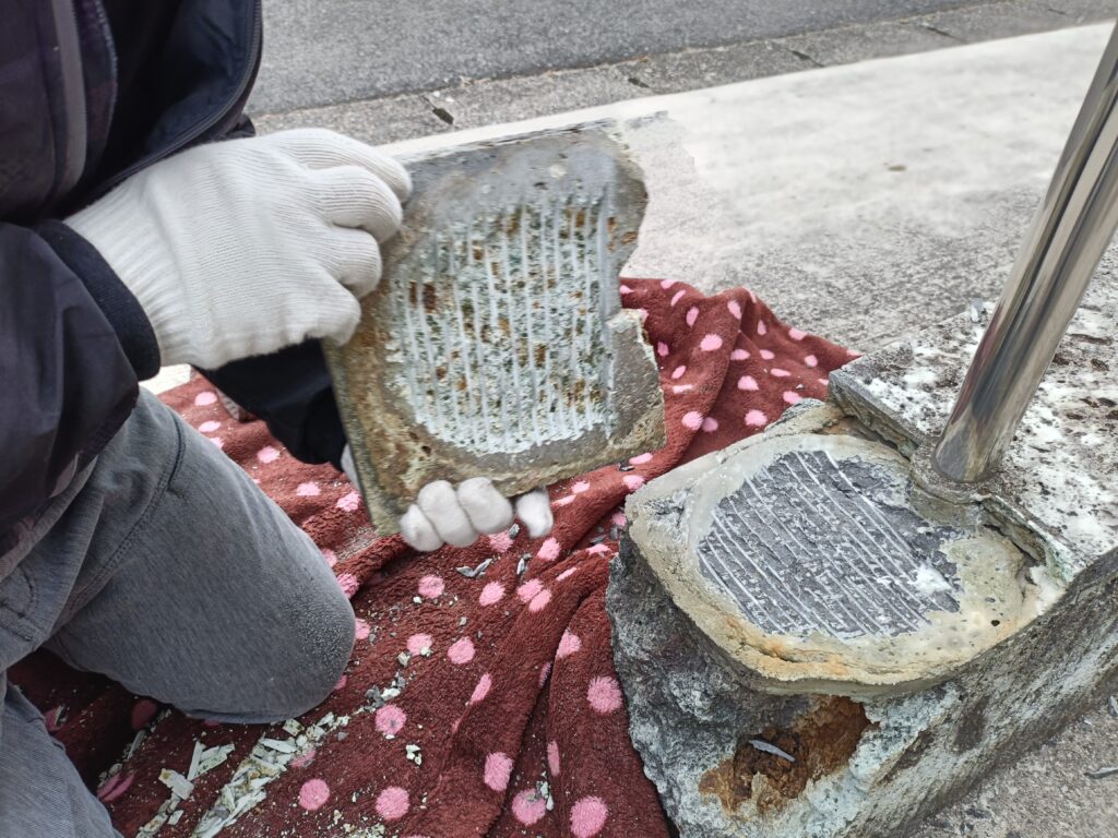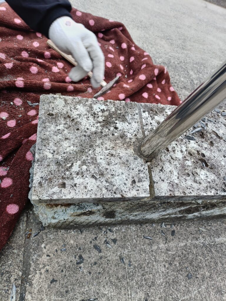 作業風景2026年2月25日笠木ブロックリペア(修復)作業