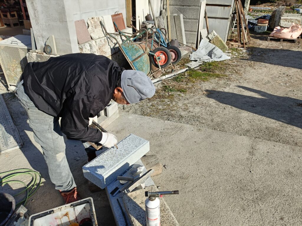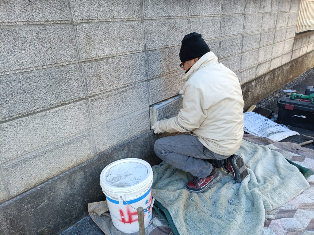 作業風景2026年2月25日笠木ブロックリペア(修復)作業